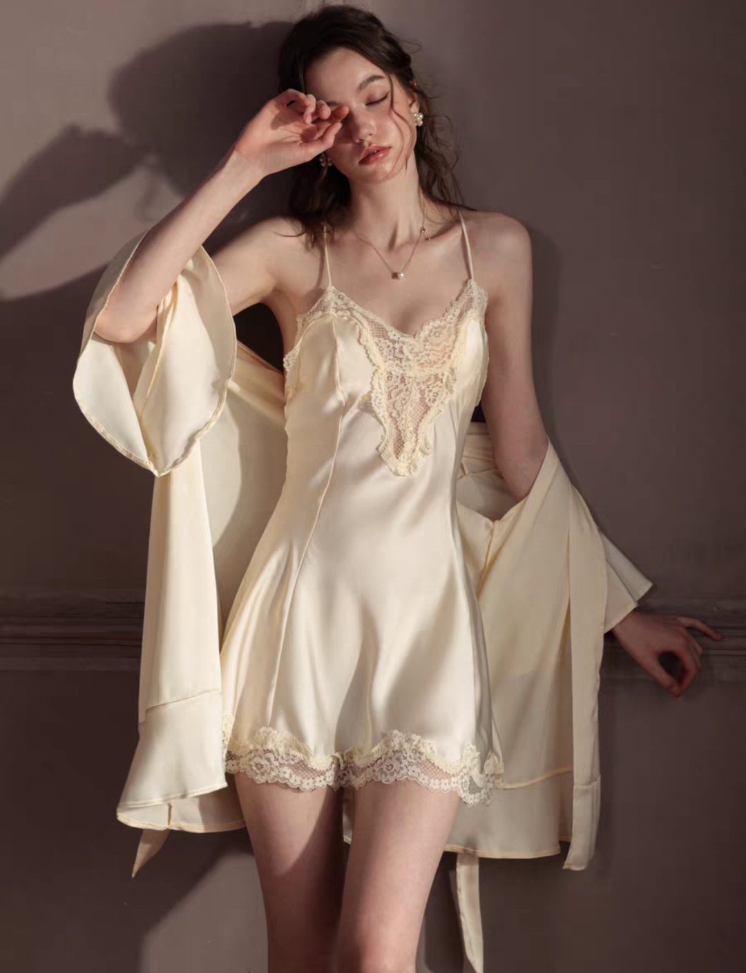 维多利亚性感吊带丝绸睡裙女夏款网红爆款2024薄款睡衣两件套睡袍