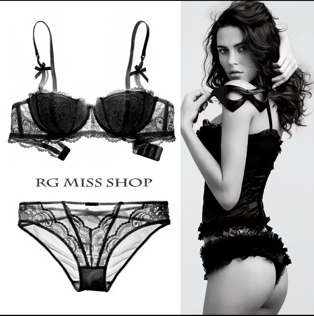 维多利亚法式蕾丝内衣女士聚拢小胸薄款防下垂性感文胸套装