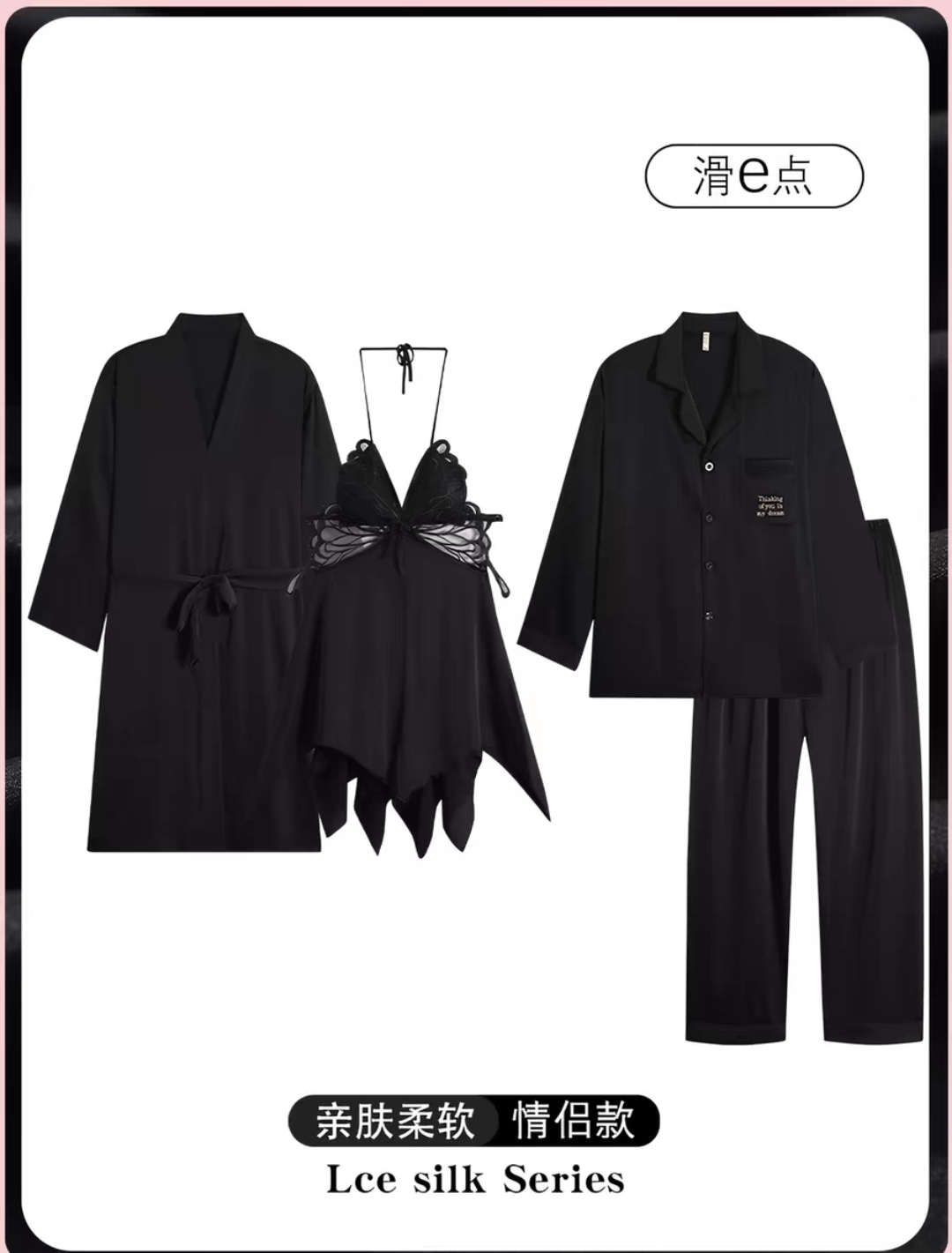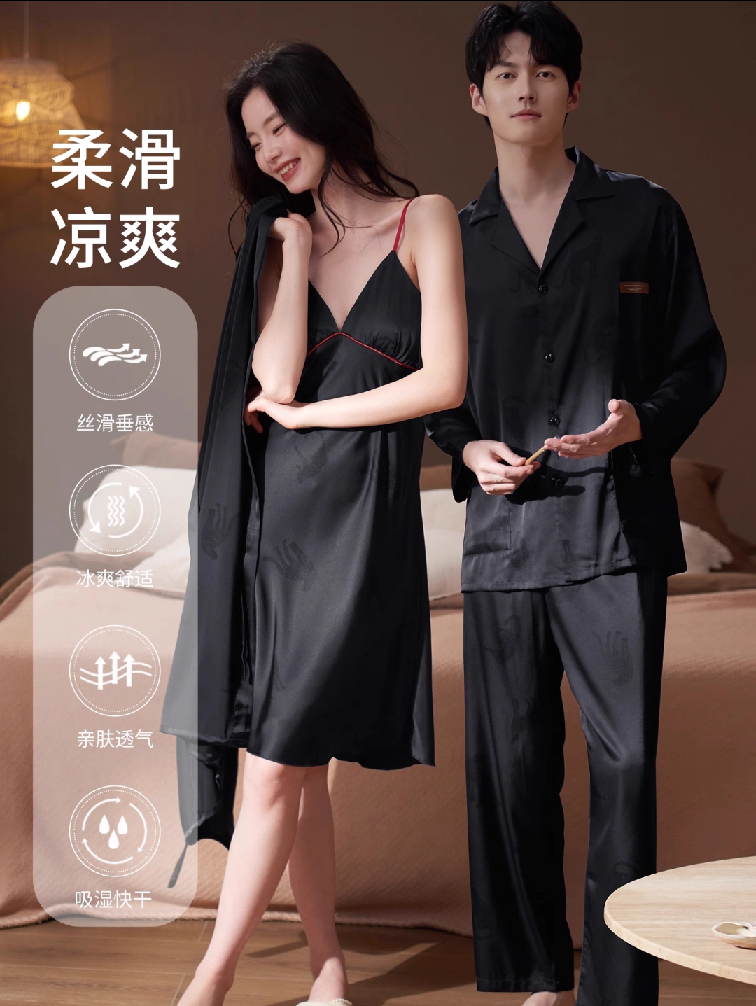 维多利亚2026年新款情侣睡衣一男一女春秋冰丝性感吊带裙睡袍套装
